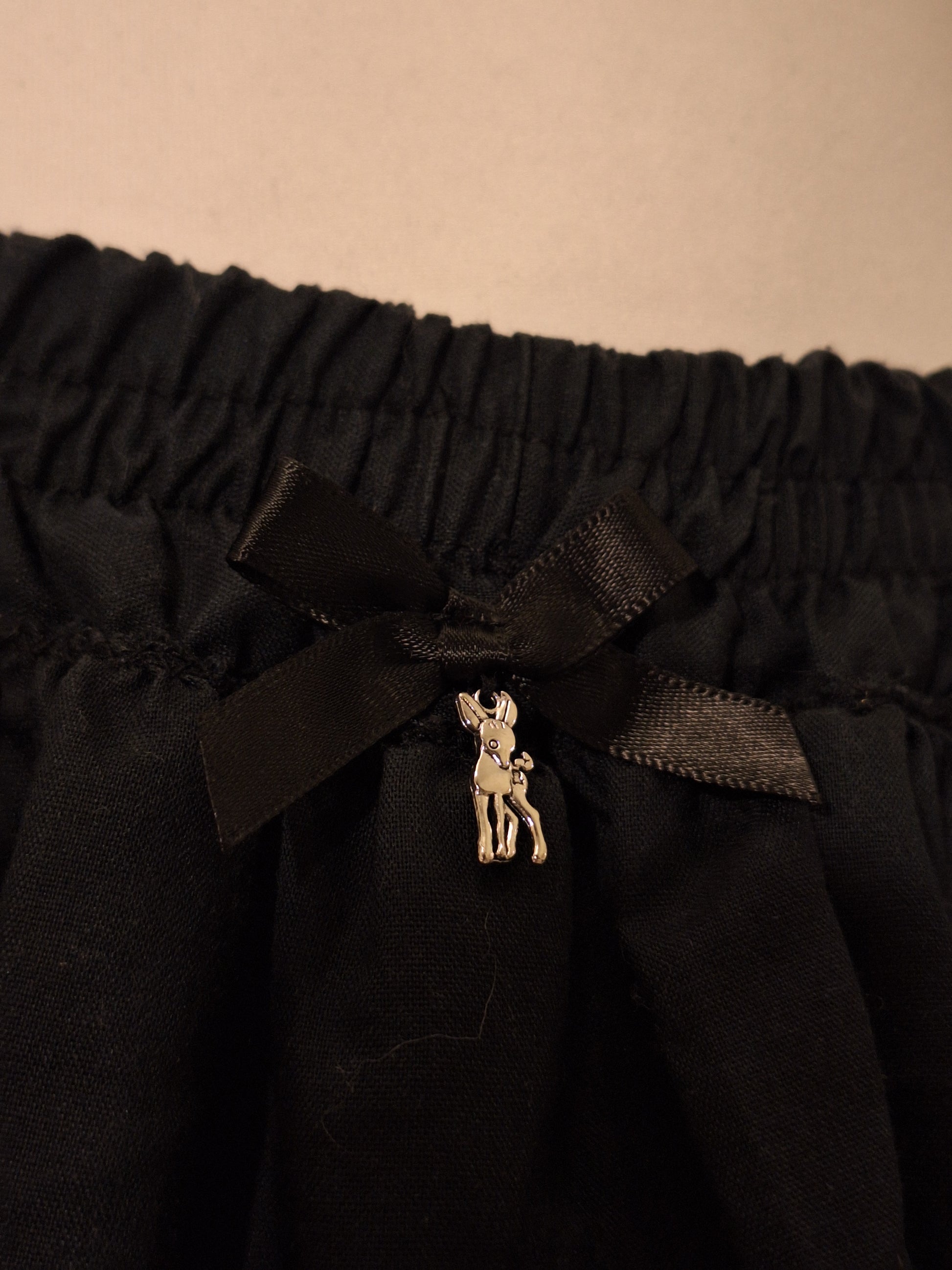 Spódniczka mini z wszytymi bloomersami. W pasie i przy nogawkach jest wszyta guma, dzięki której szorty idealnie dopasowują się do sylwetki. Uszyte z użyciem materiałów z upcyklingu.