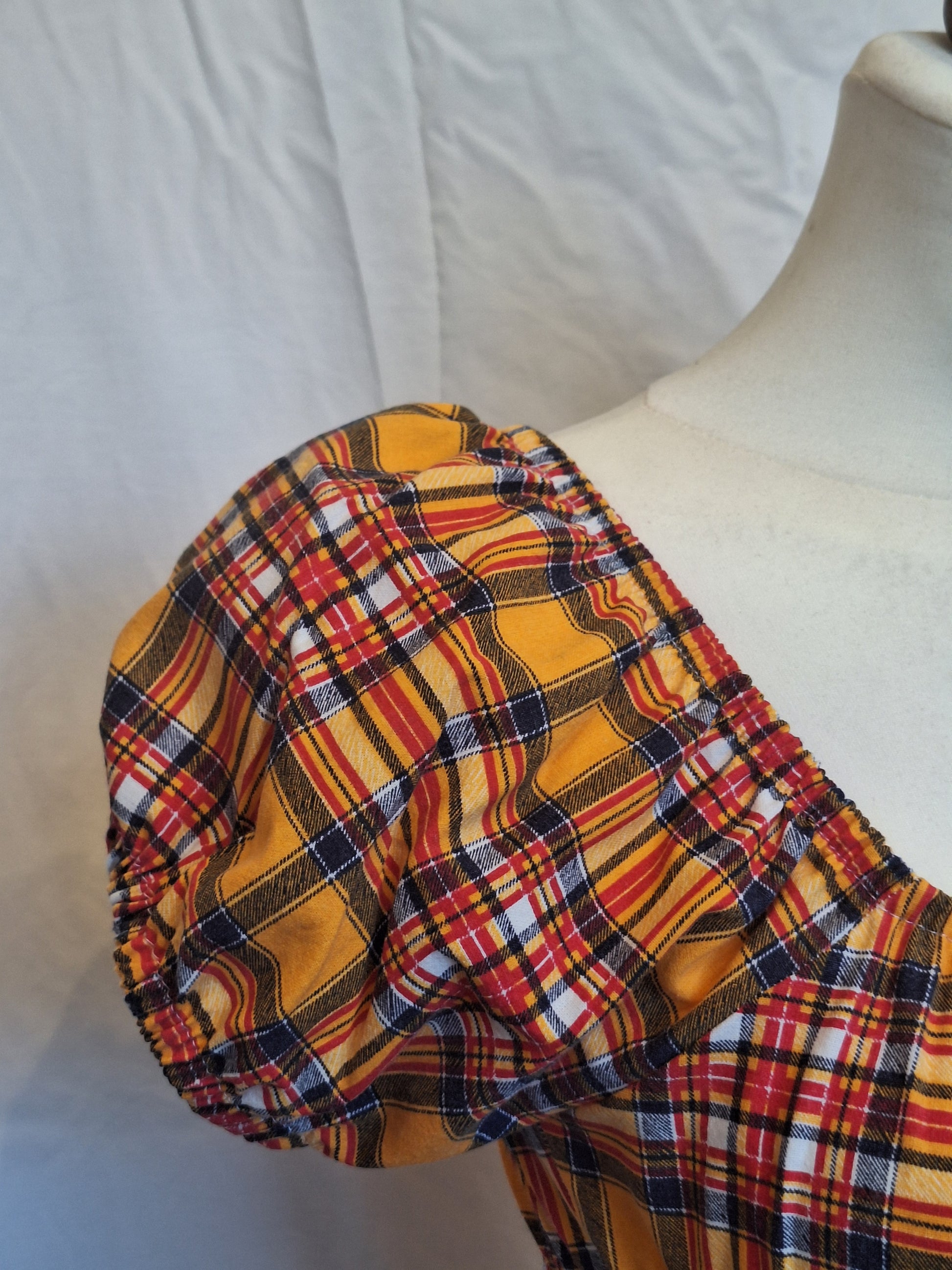 Bluzka typu milkmaid, uszyta z materiałów z upcyklingu.