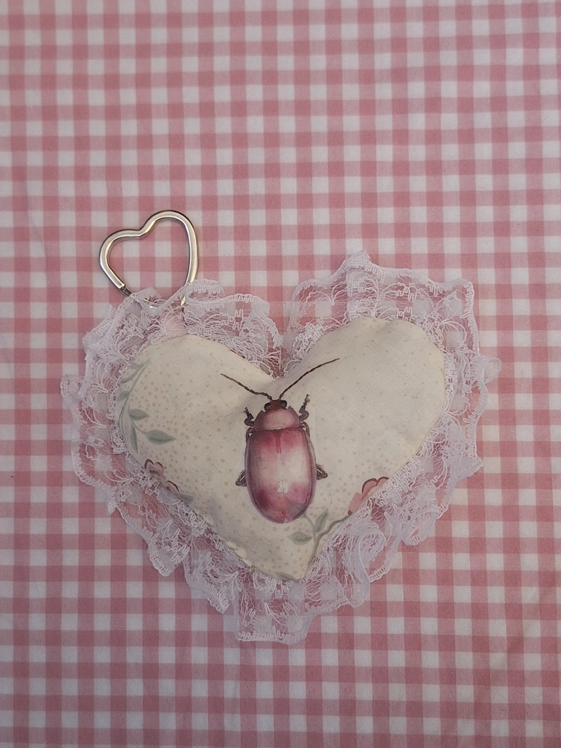 Pluszowy brelok z nadrukiem żuczka, uszyty z użyciem materiałów z upcyklingu.