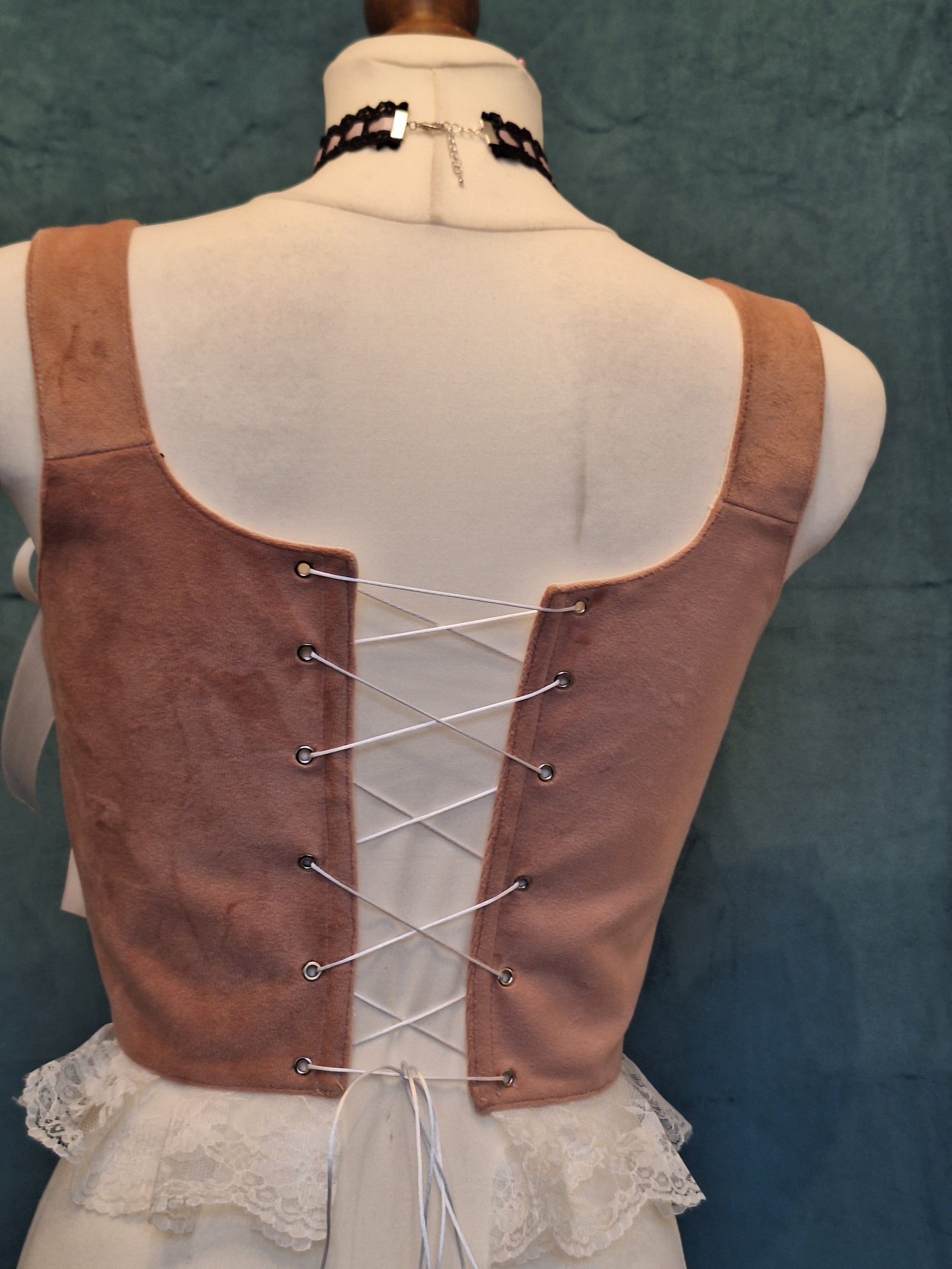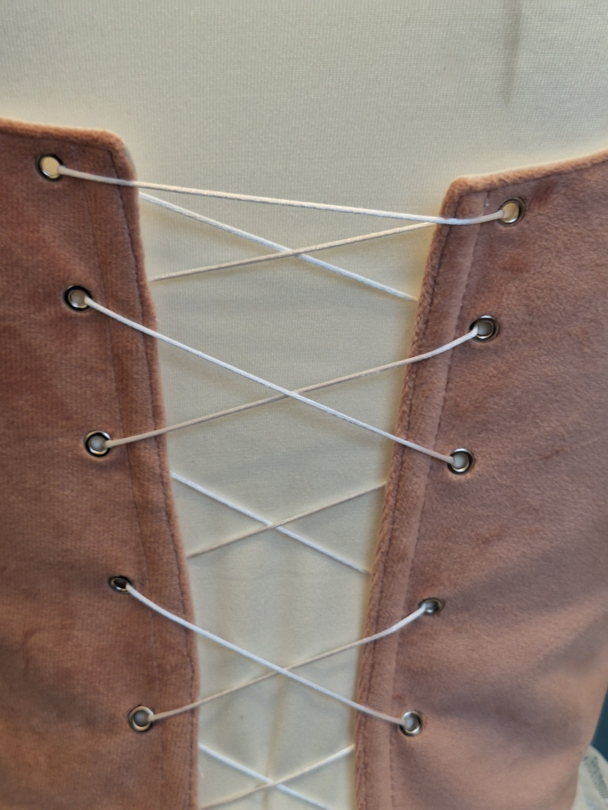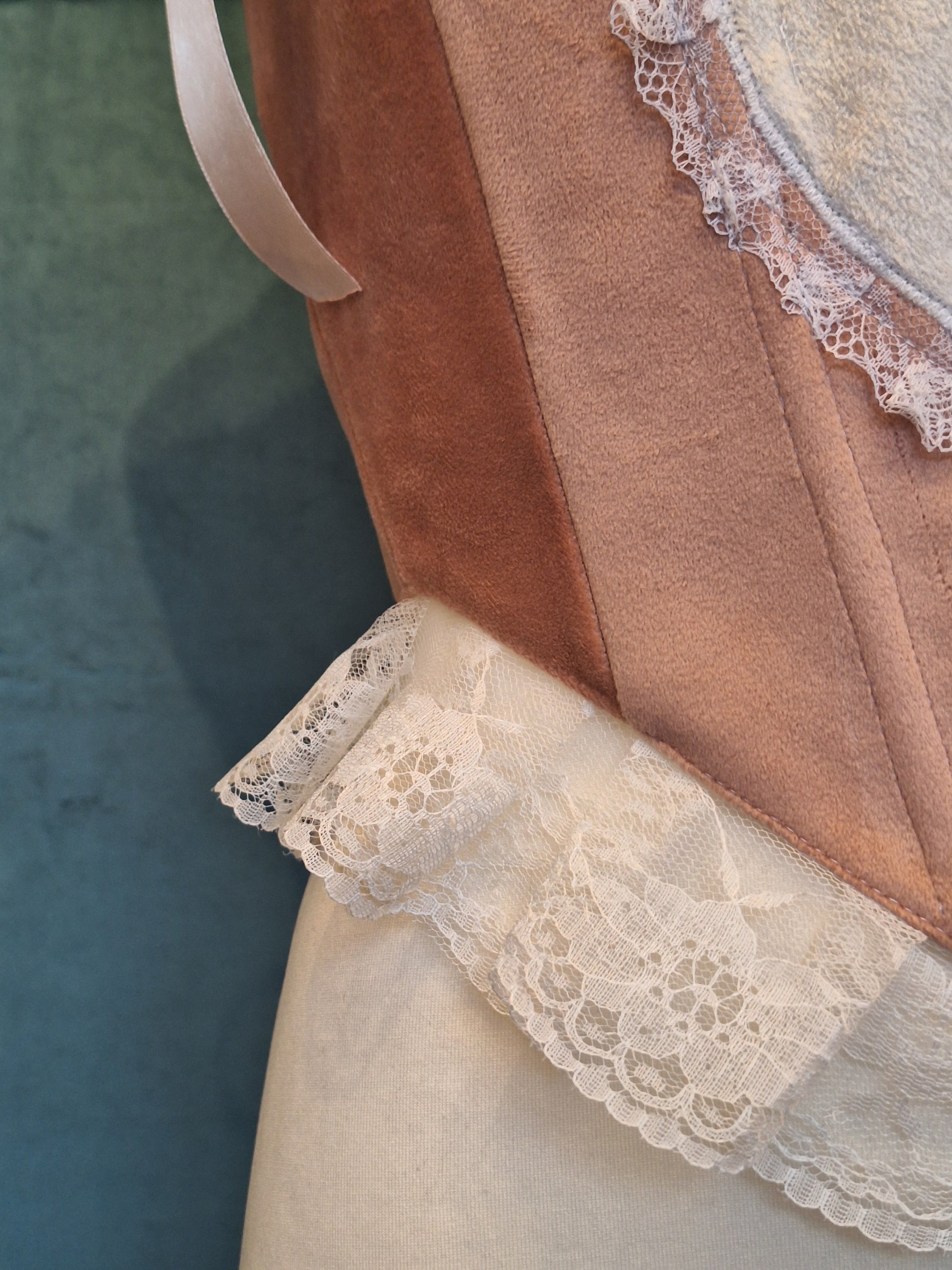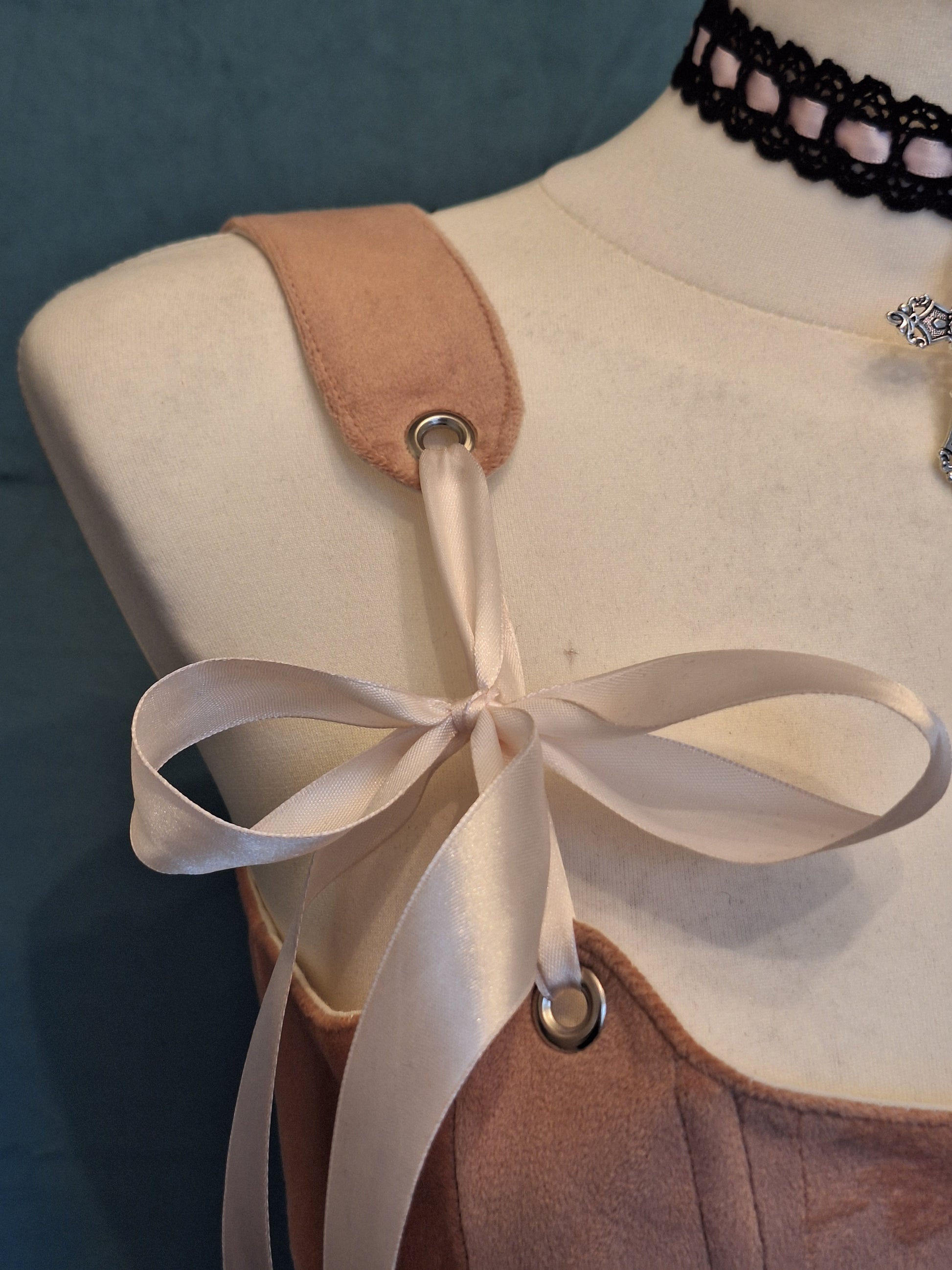 Gorset welurowy, usztywniany, regulowany, uszyty z użyciem materiałów z upcyklingu.