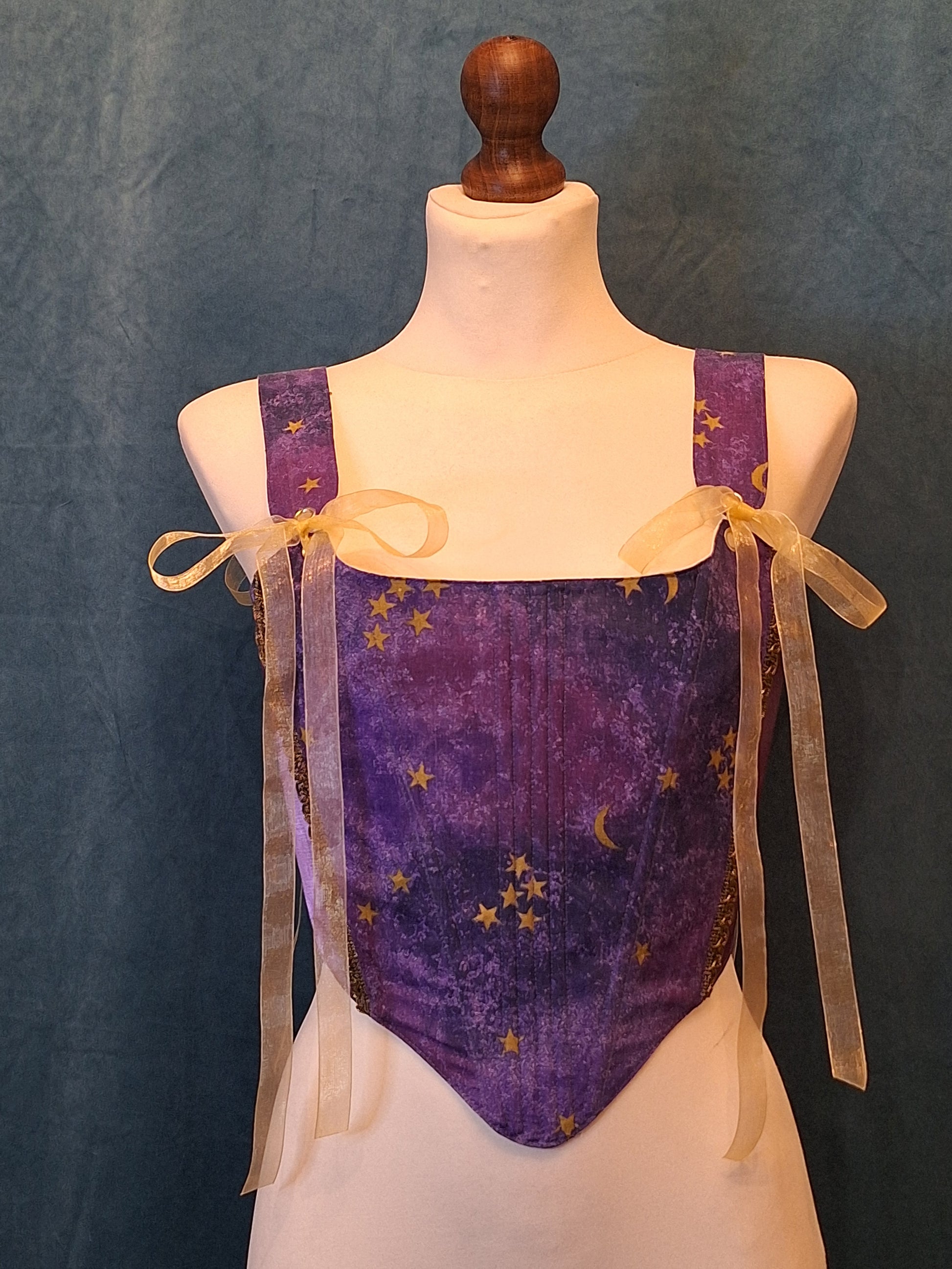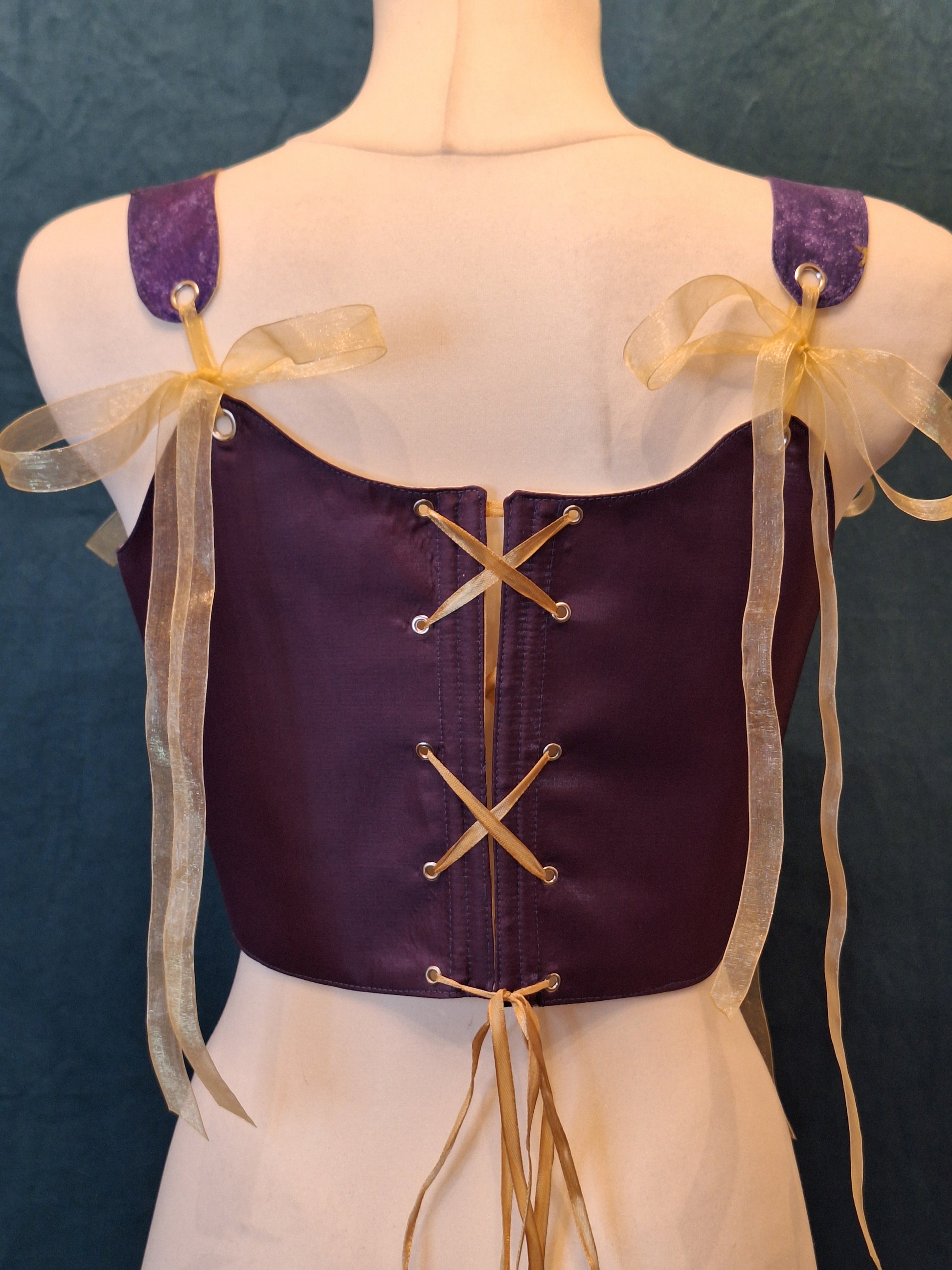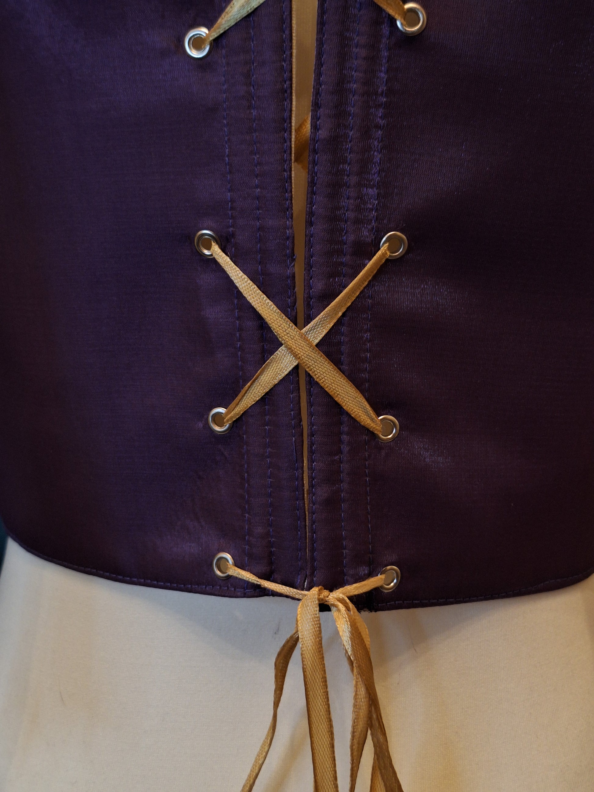 Gorset usztywniany, regulowany, uszyty z materiałów z upcyklingu.