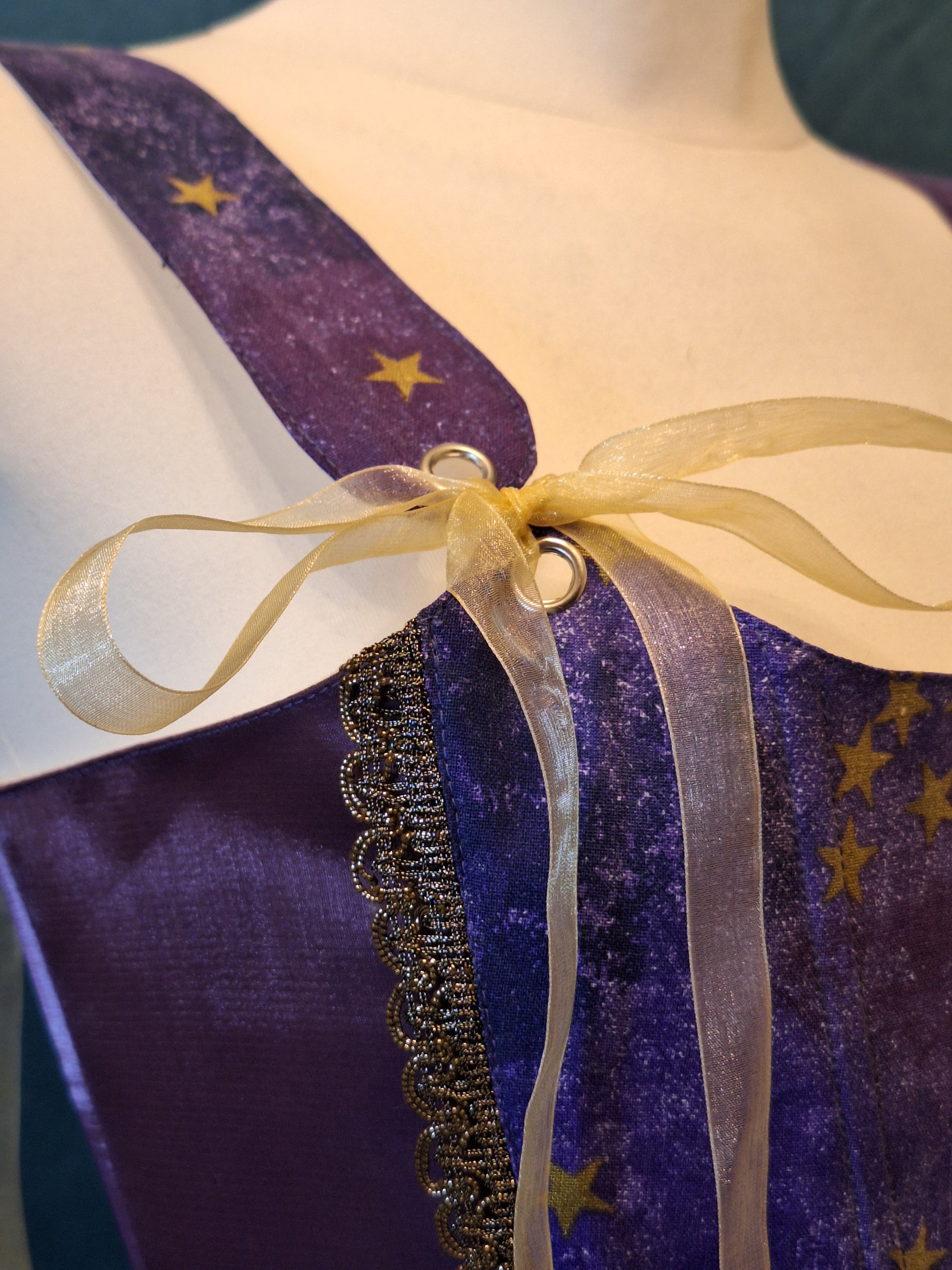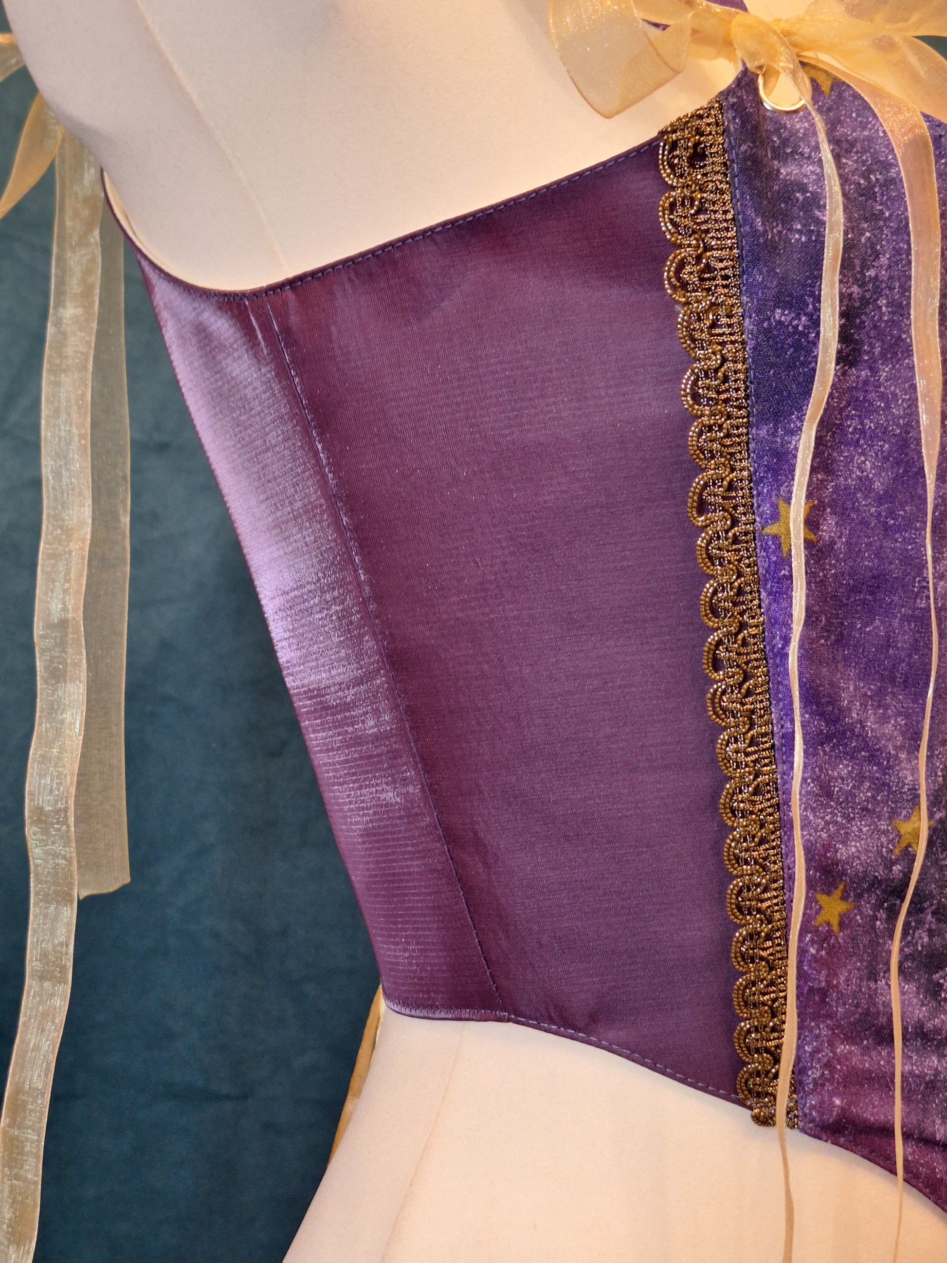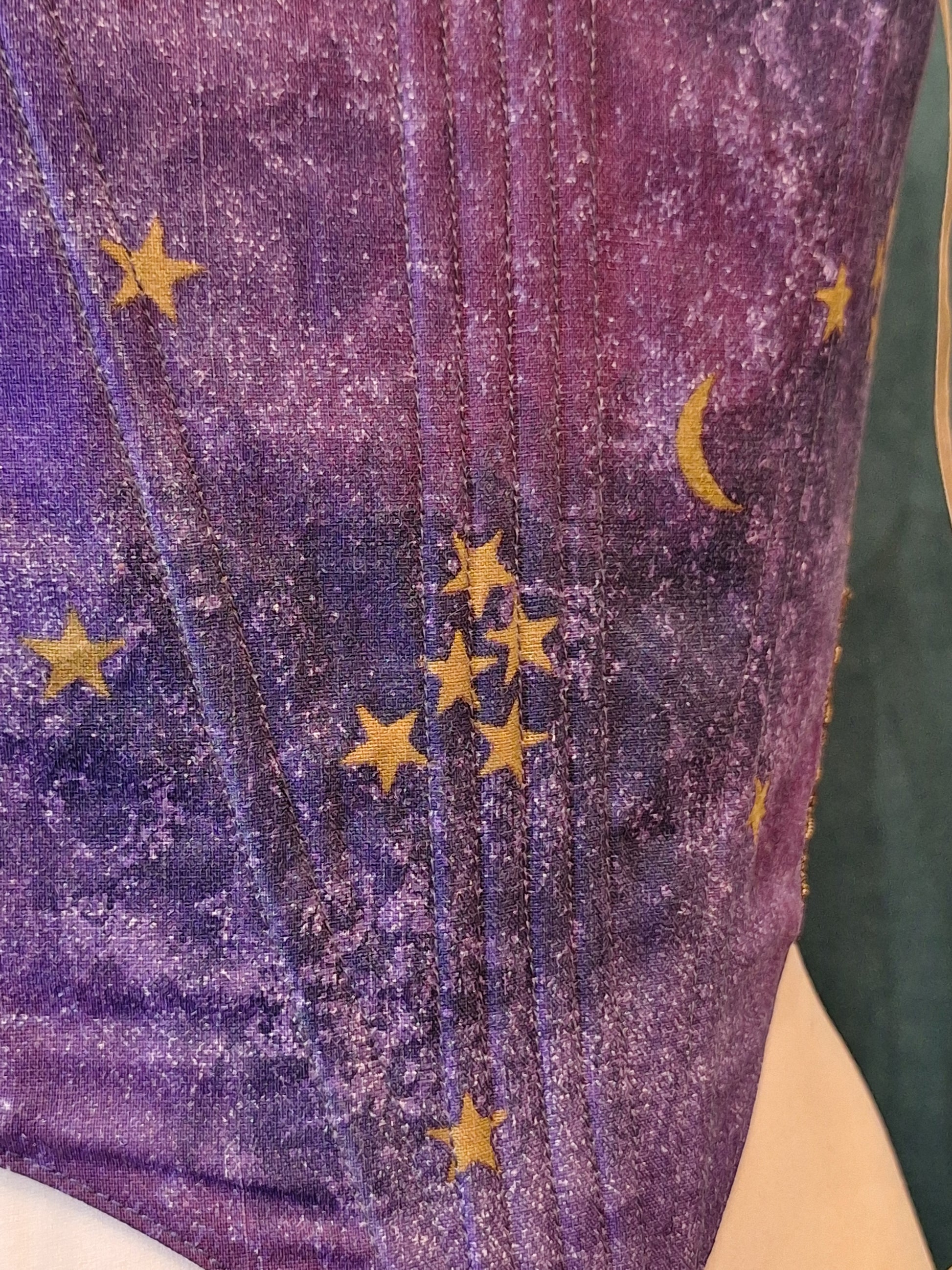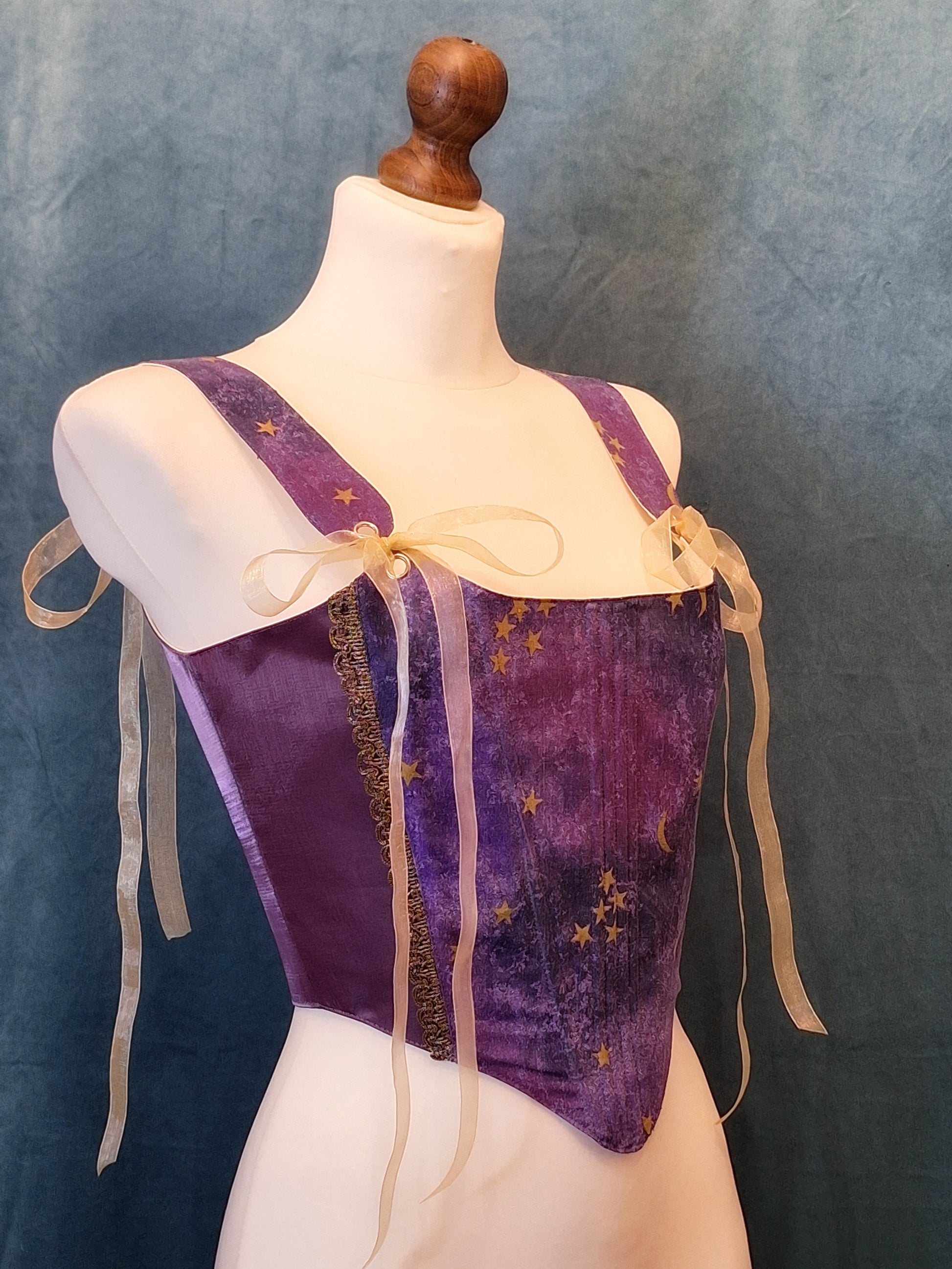 Gorset usztywniany, regulowany, uszyty z materiałów z upcyklingu.