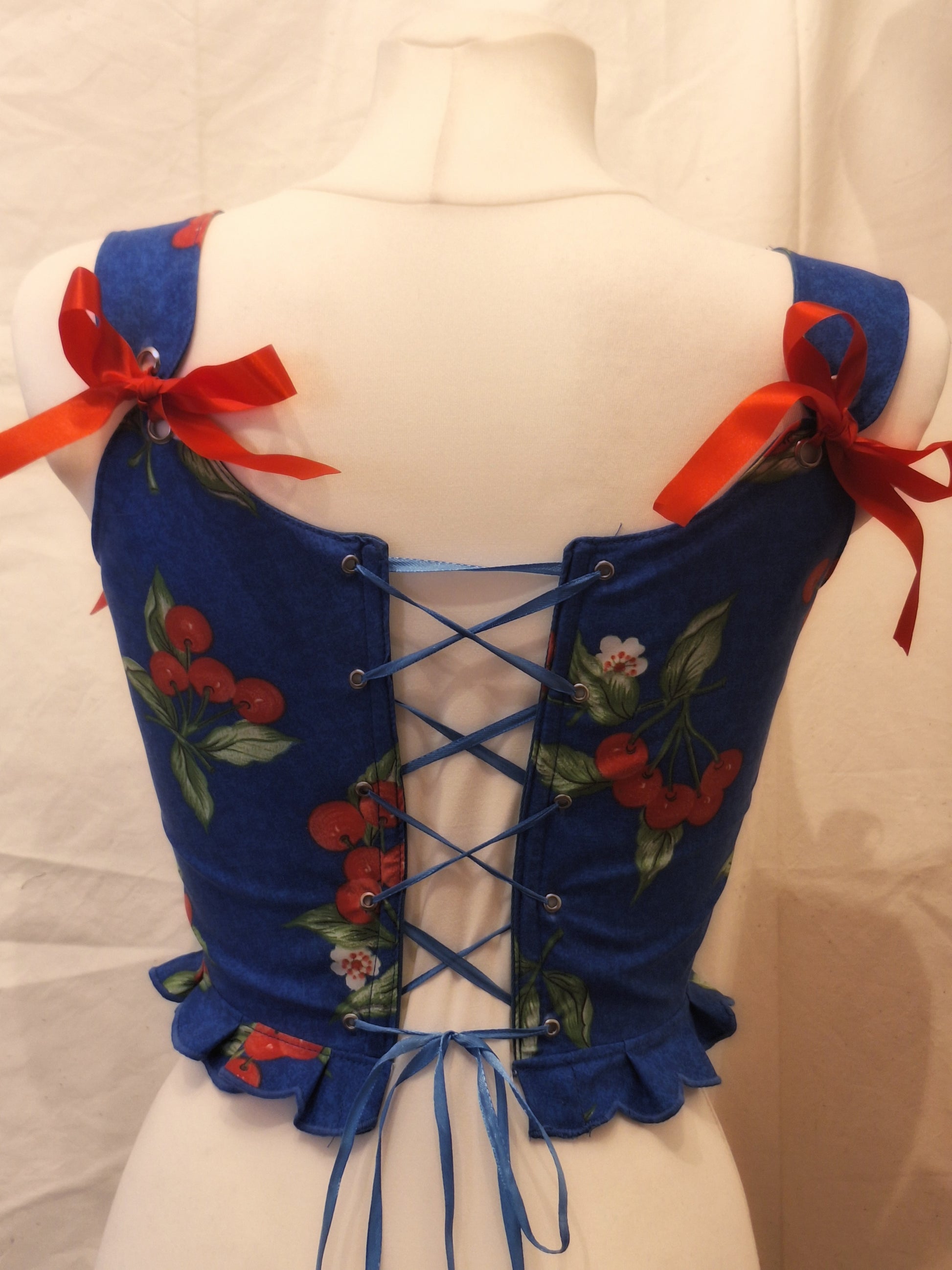Gorset usztywniany, regulowany, uszyty z materiałów z upcyklingu.