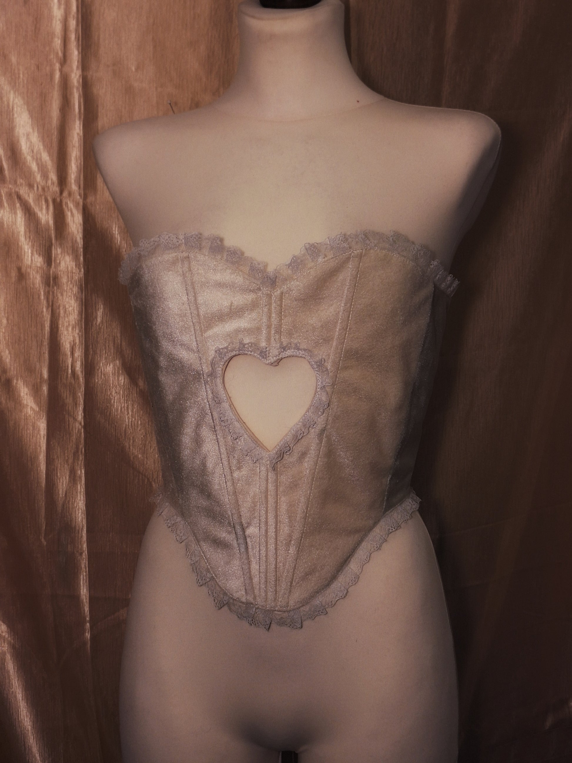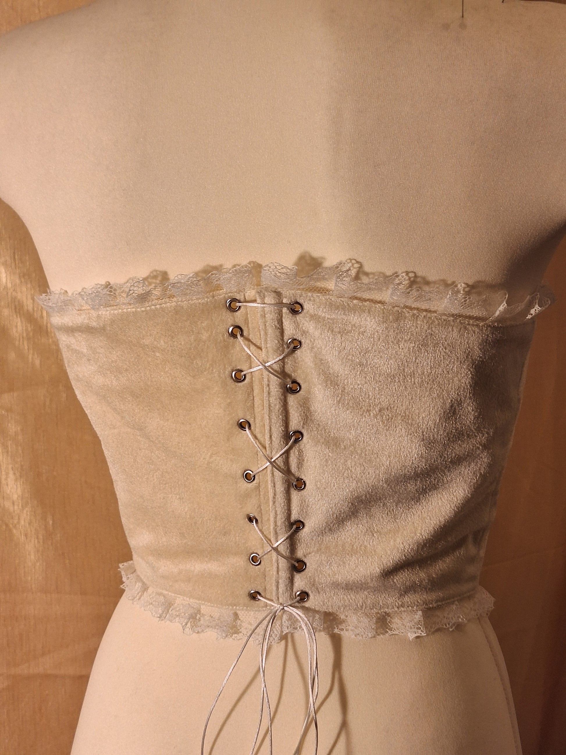 Gorset usztywniany, regulowany, uszyty z materiałów z upcyklingu.