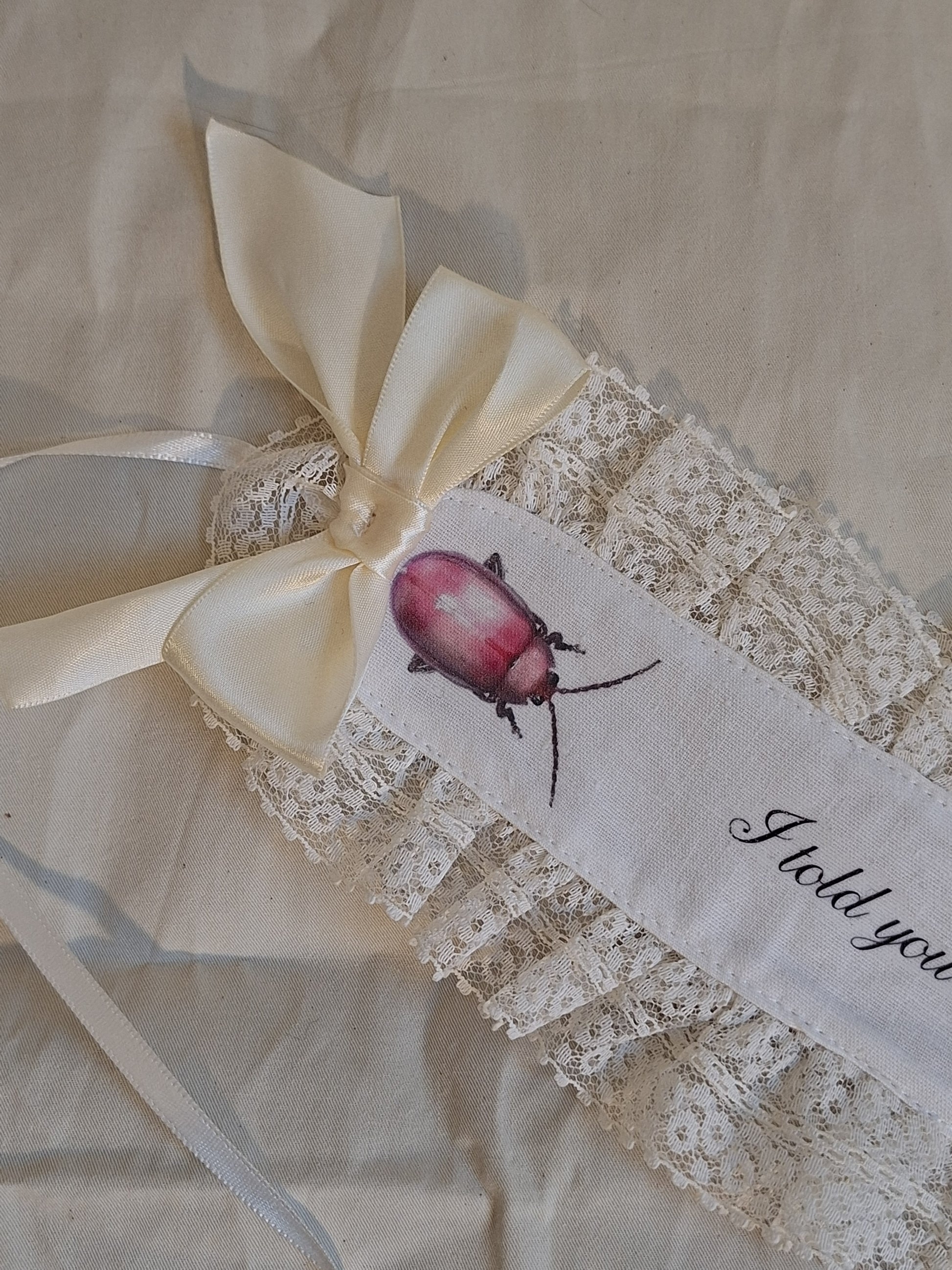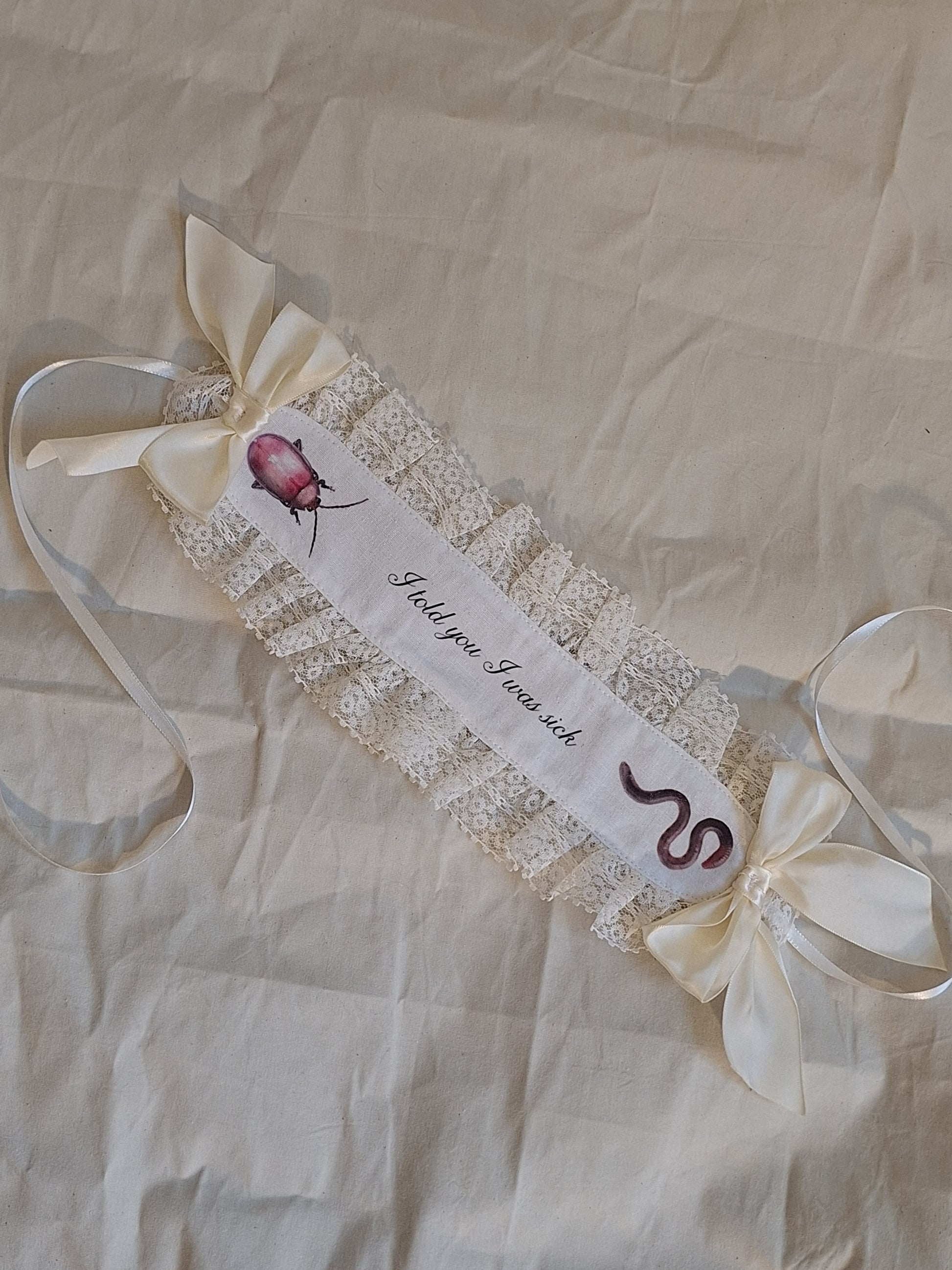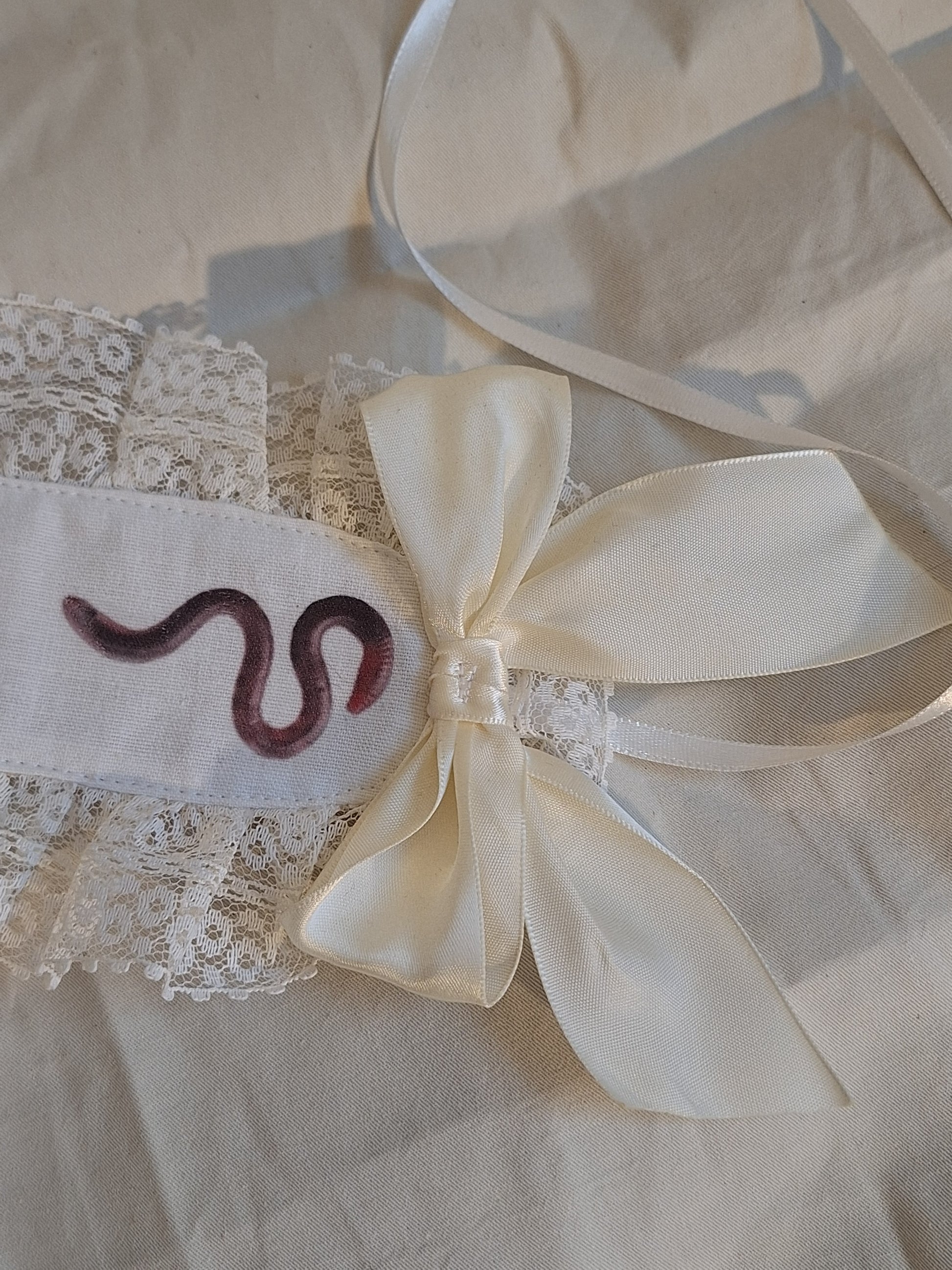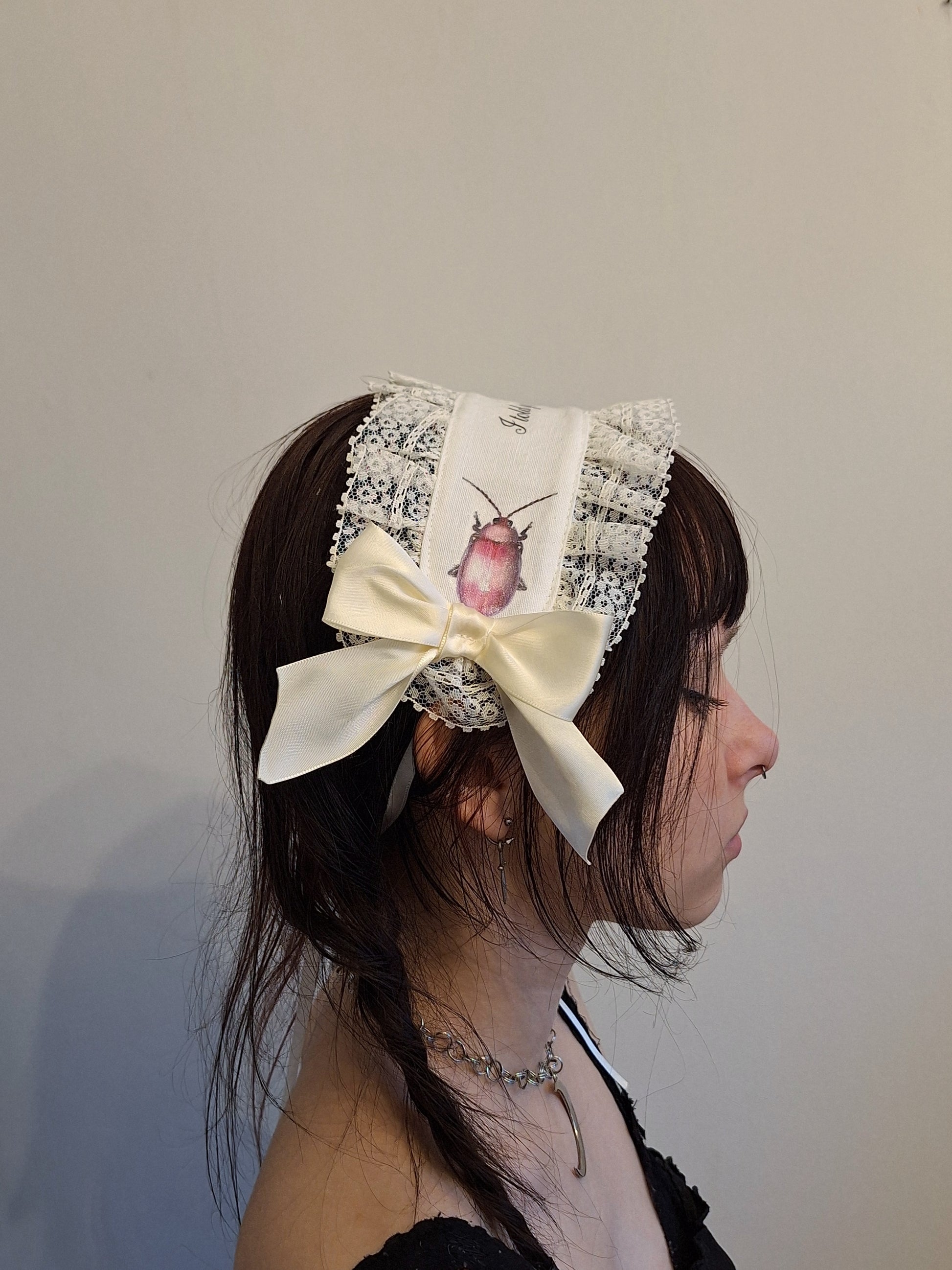 Headdress z nadrukiem, obszyty koronką, wiązany