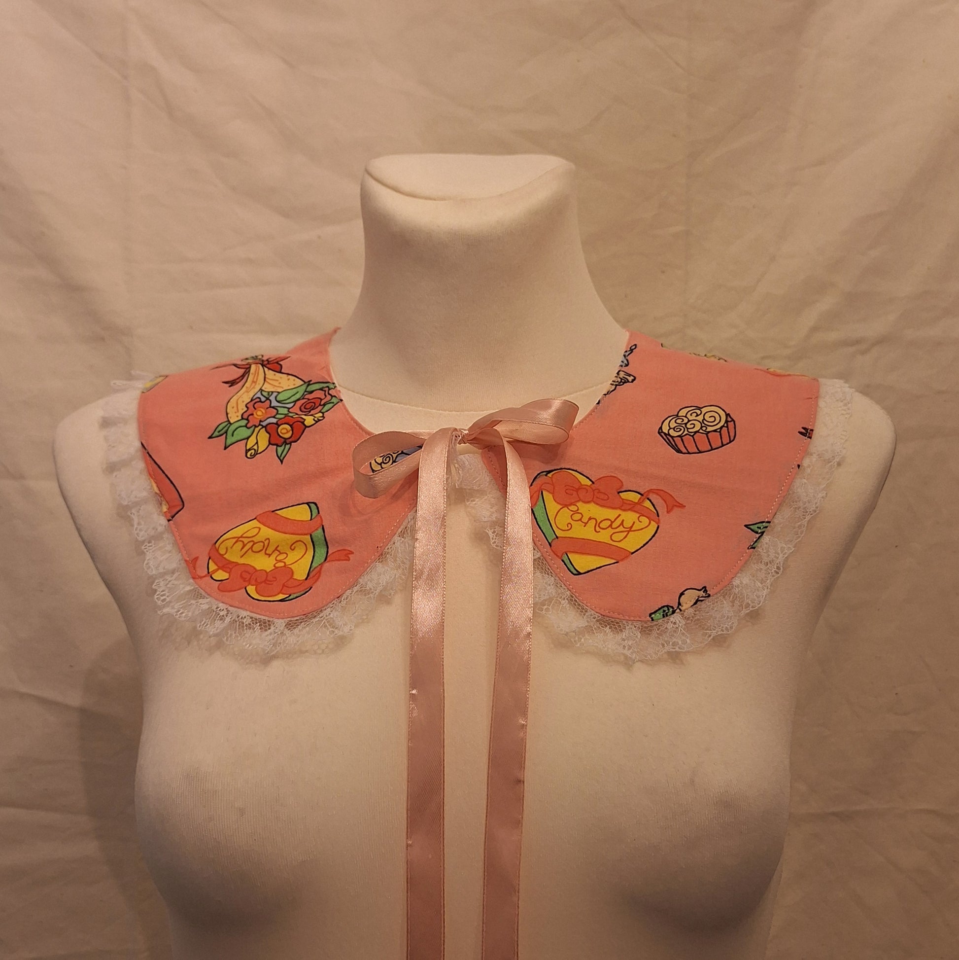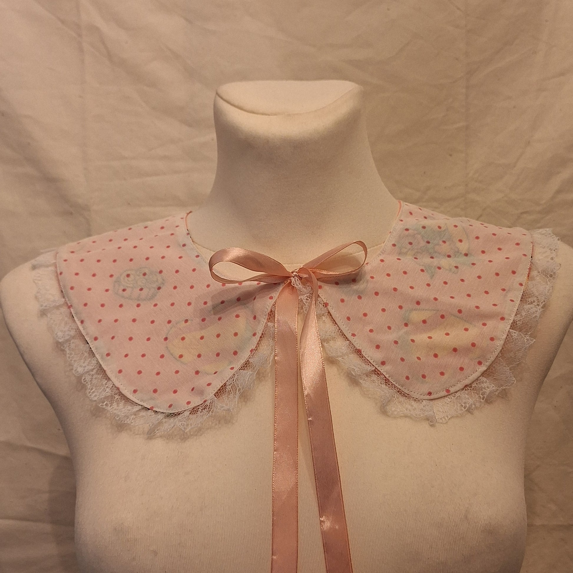 Kołnierzyk wiązany, dwustronny, uszyty z materiałów z upcyklingu.