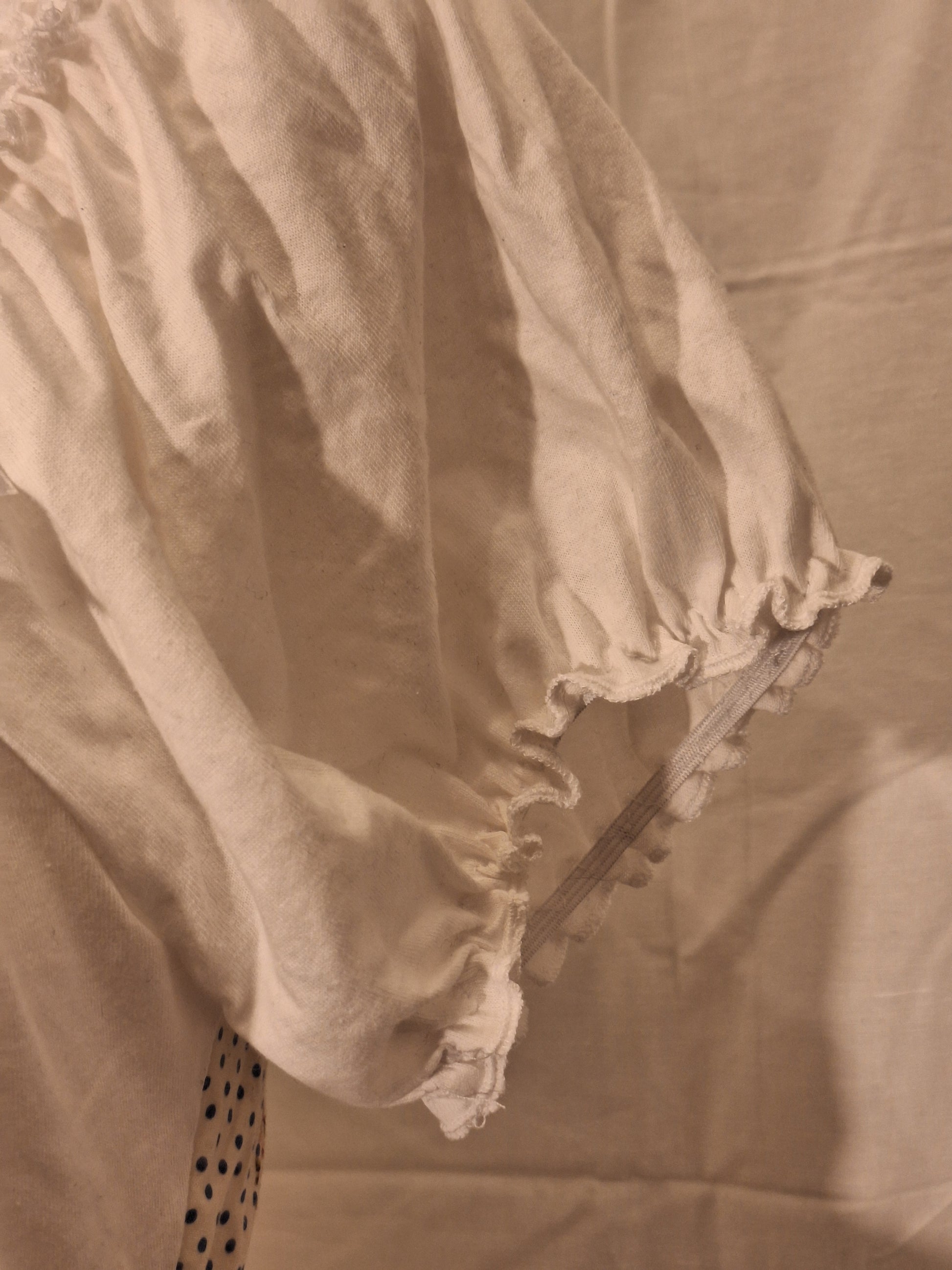 Bluzka typu milkmaid, uszyta z materiałów z upcyklingu.