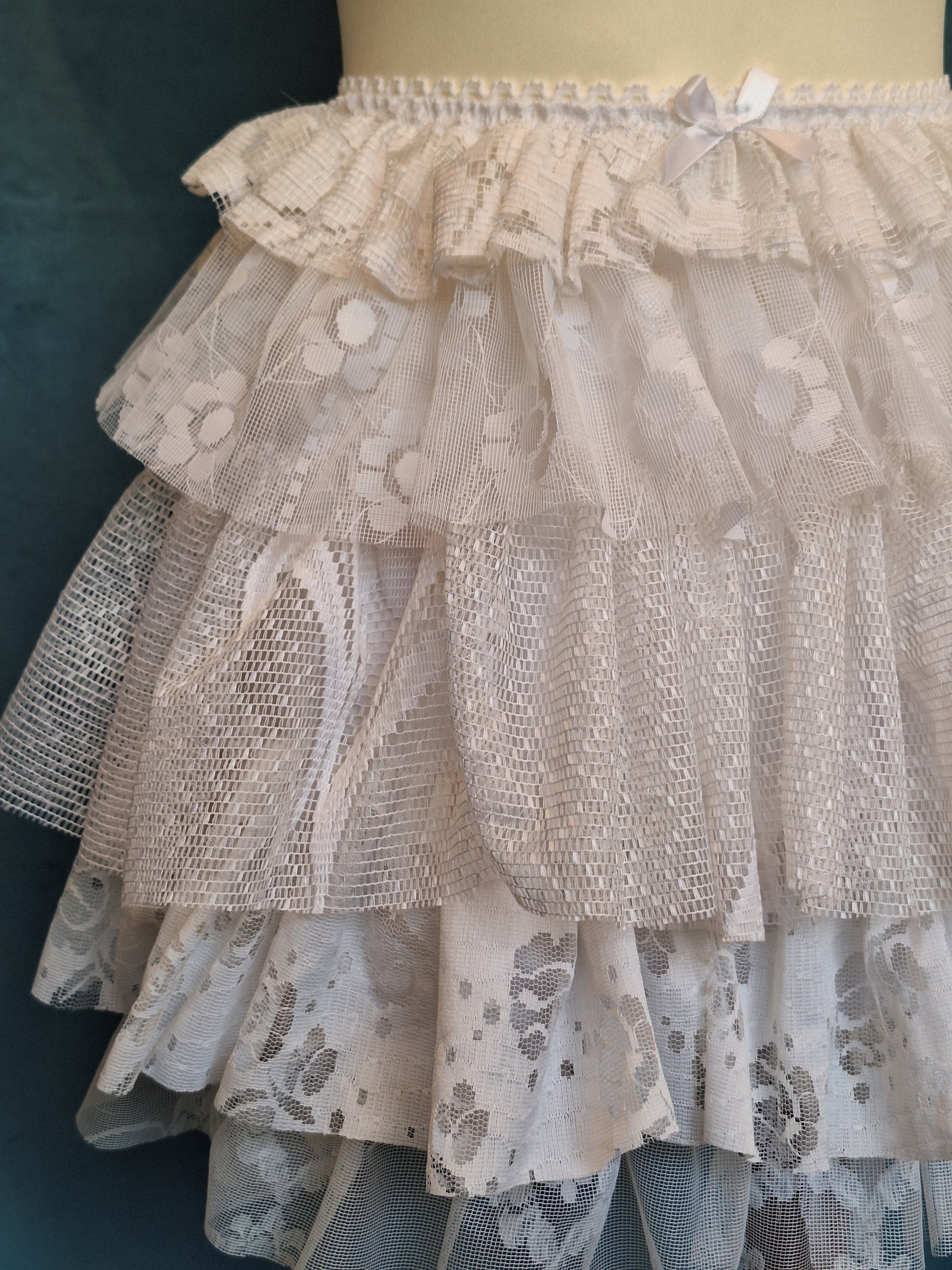 Spódniczka koronkowa, uszyta z materiałów z upcyklingu.