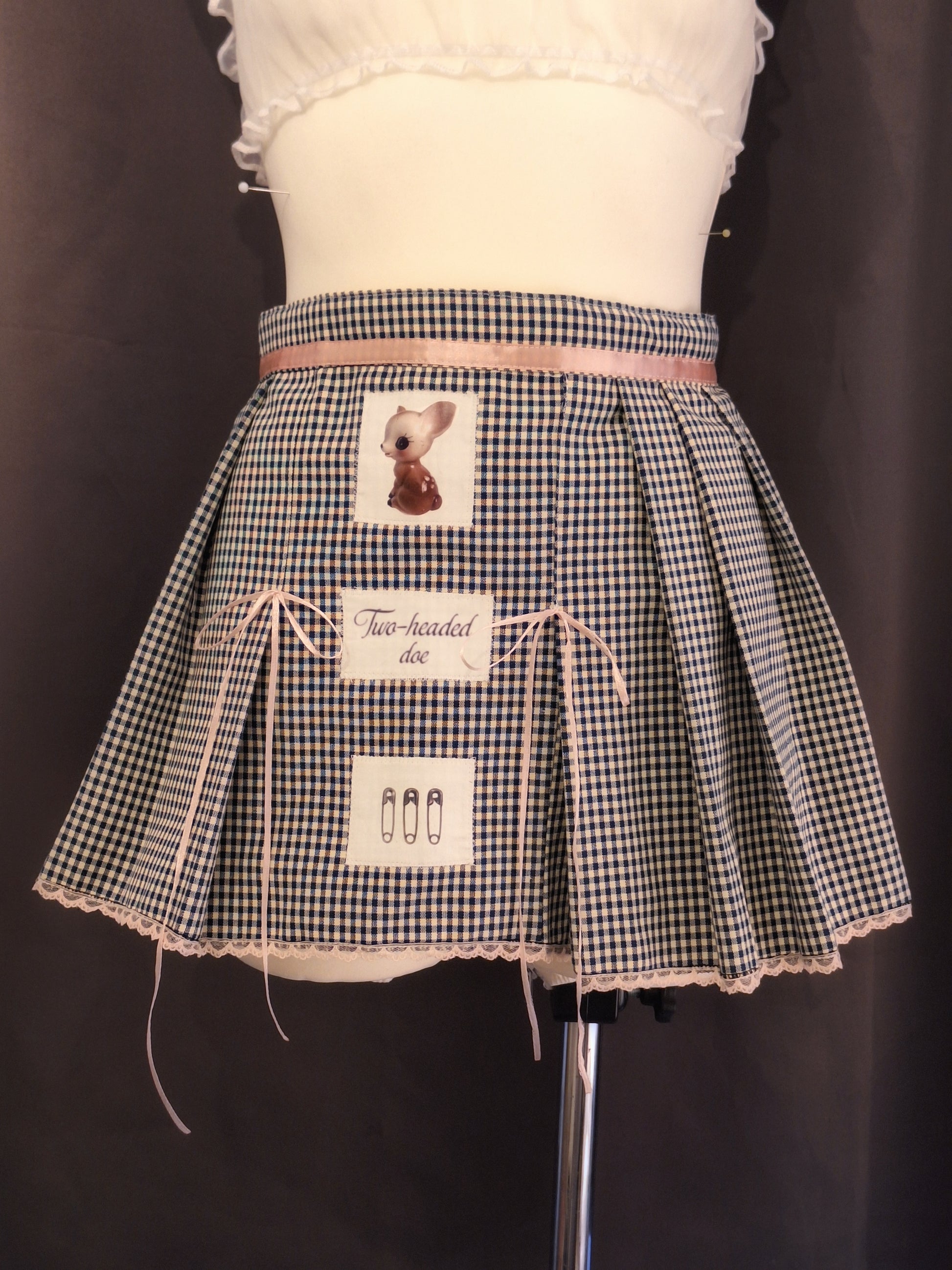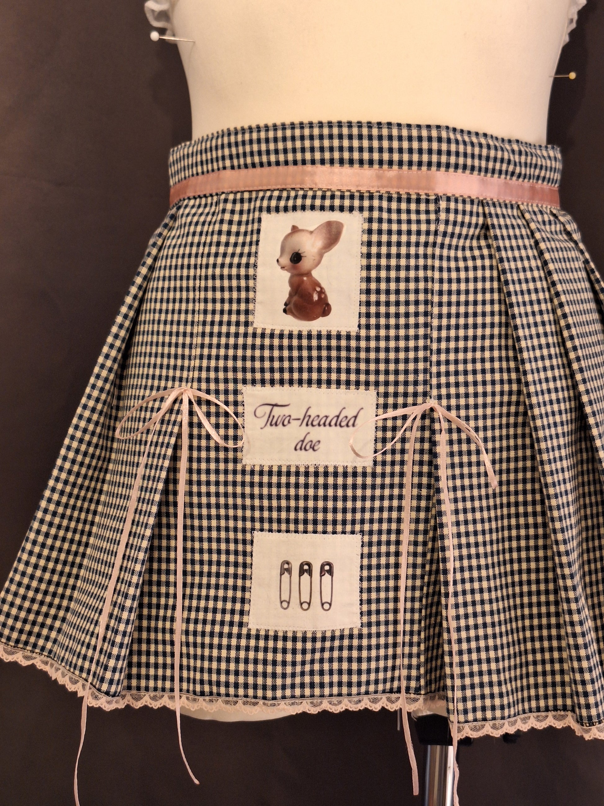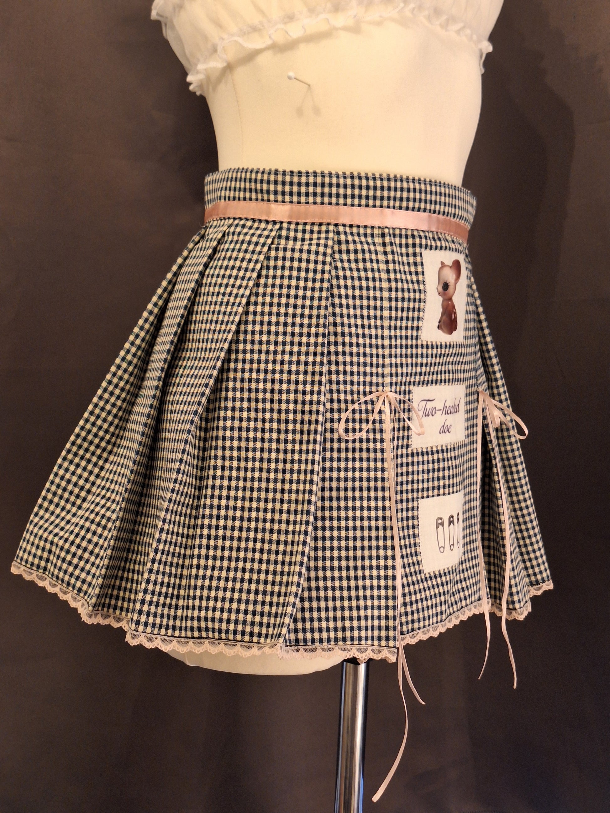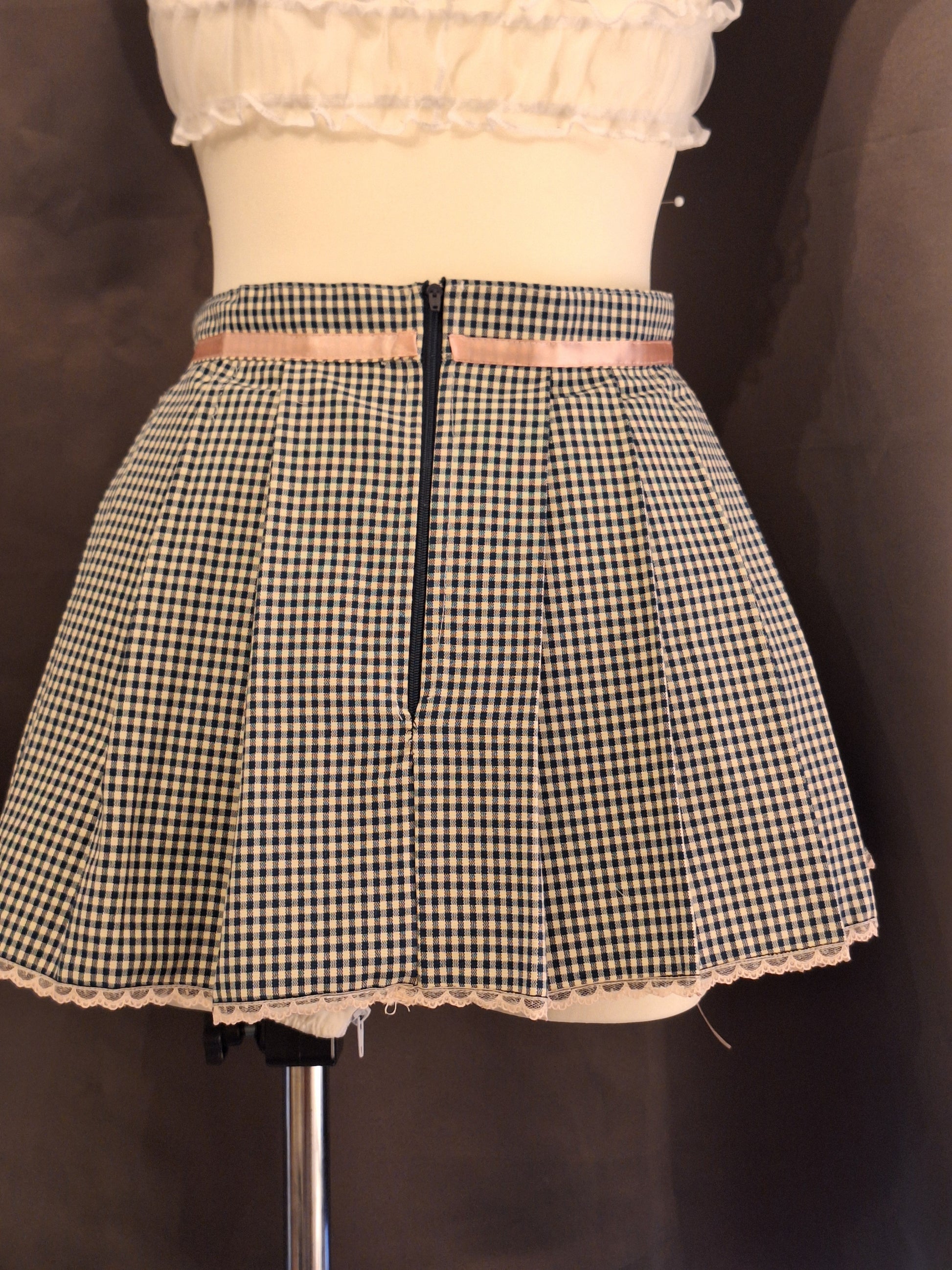 Spódniczka krótka, plisowana, uszyta z materiałów z upcyklingu. Zapinana na zamek.