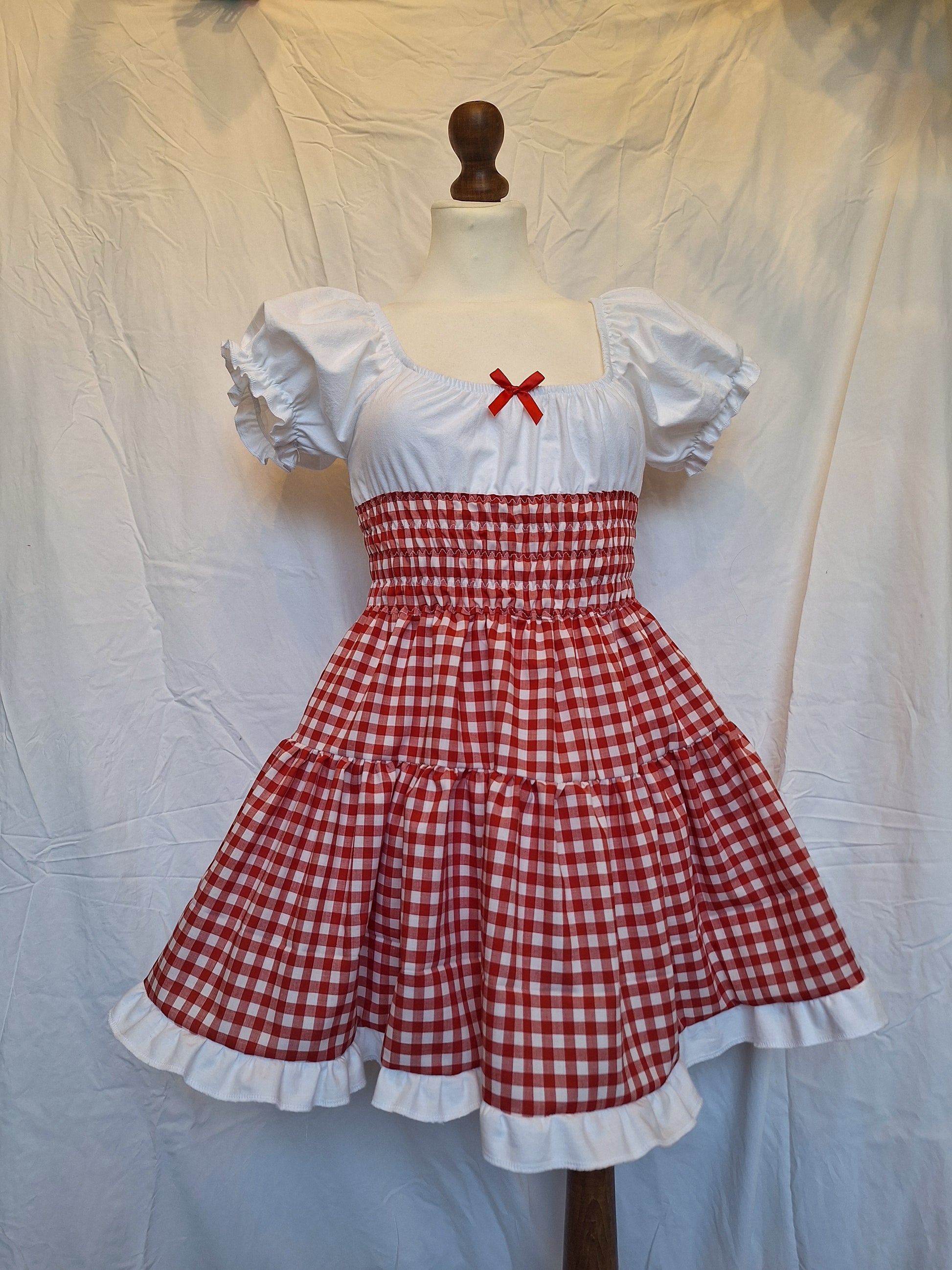 Sukienka milkmaid czerwona kratka XS/S