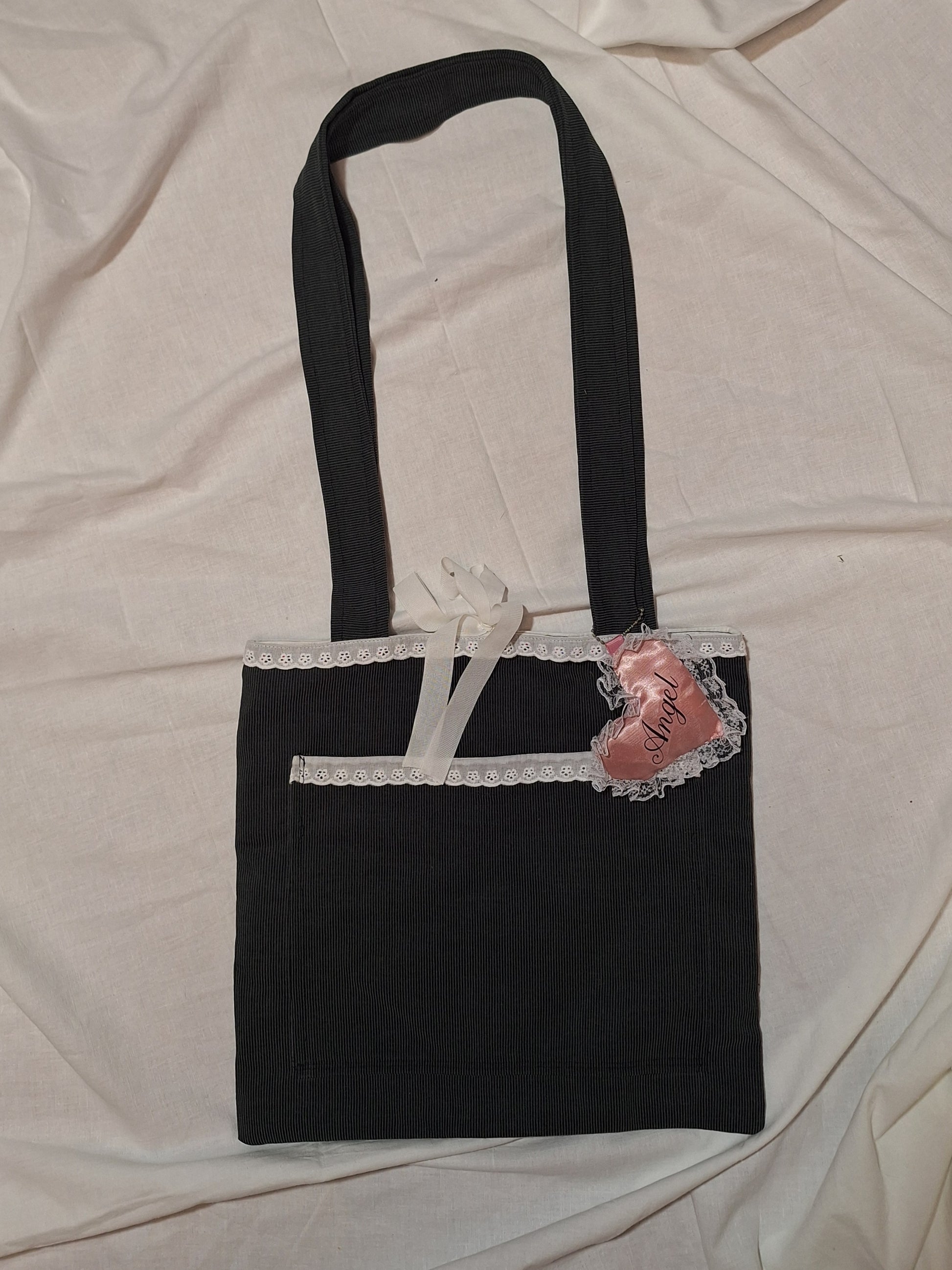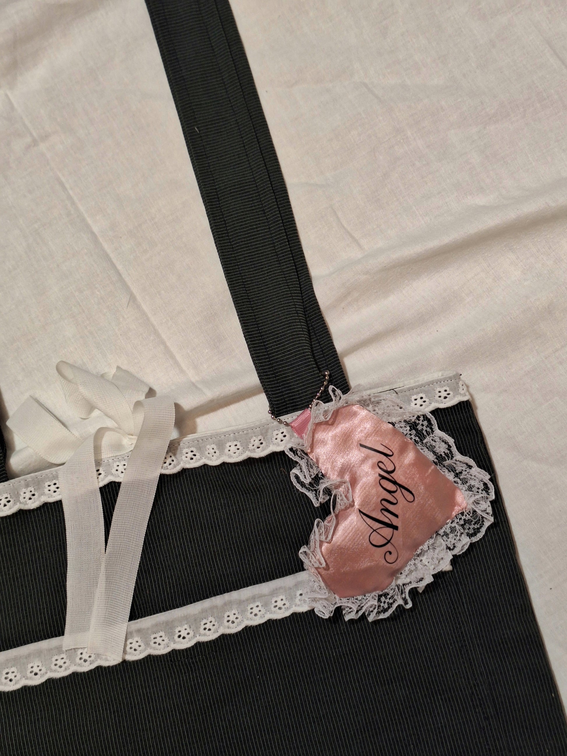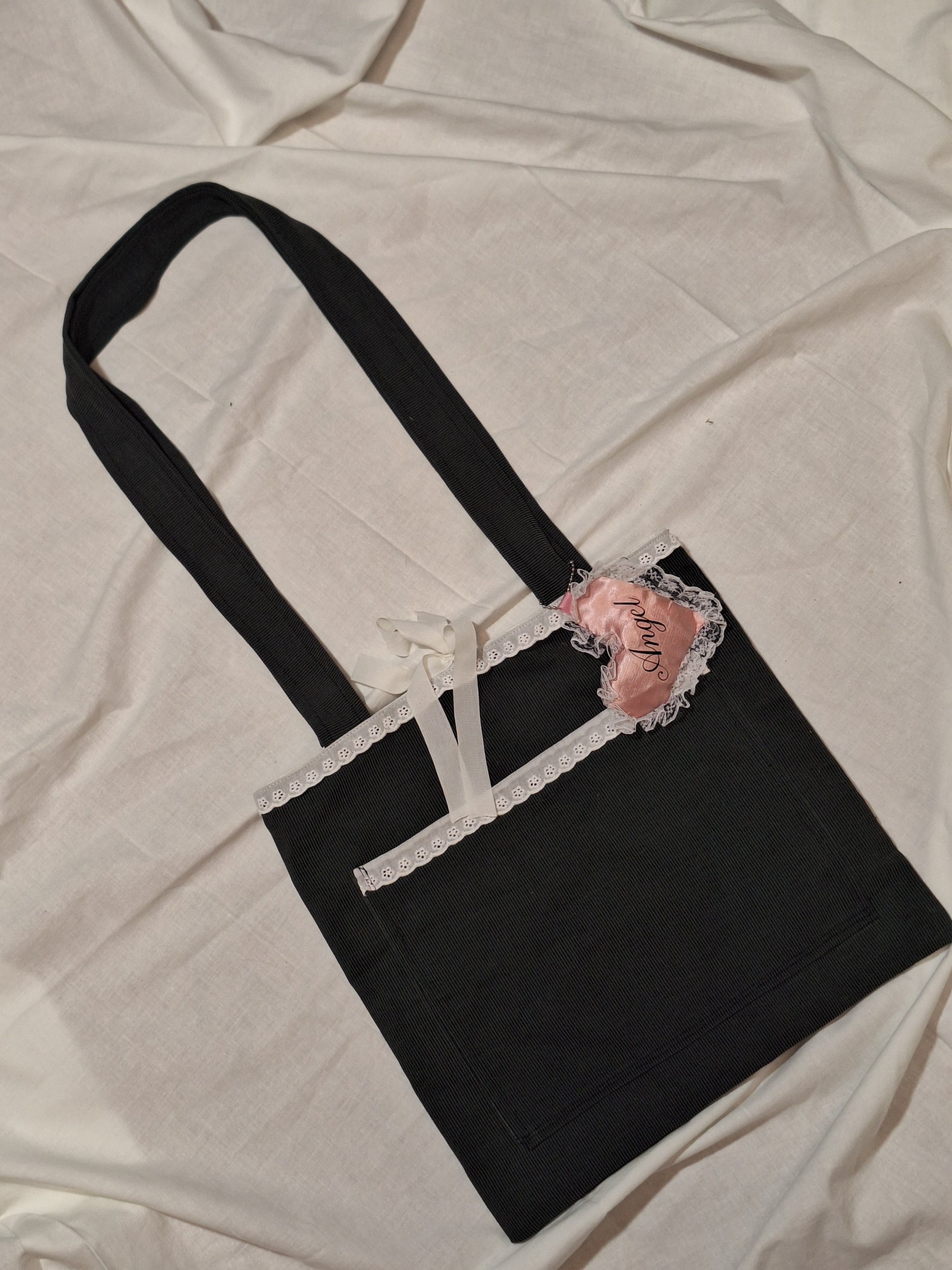 Torba typu tote bag z koronką, uszyta z materiałów z upcyklingu.
